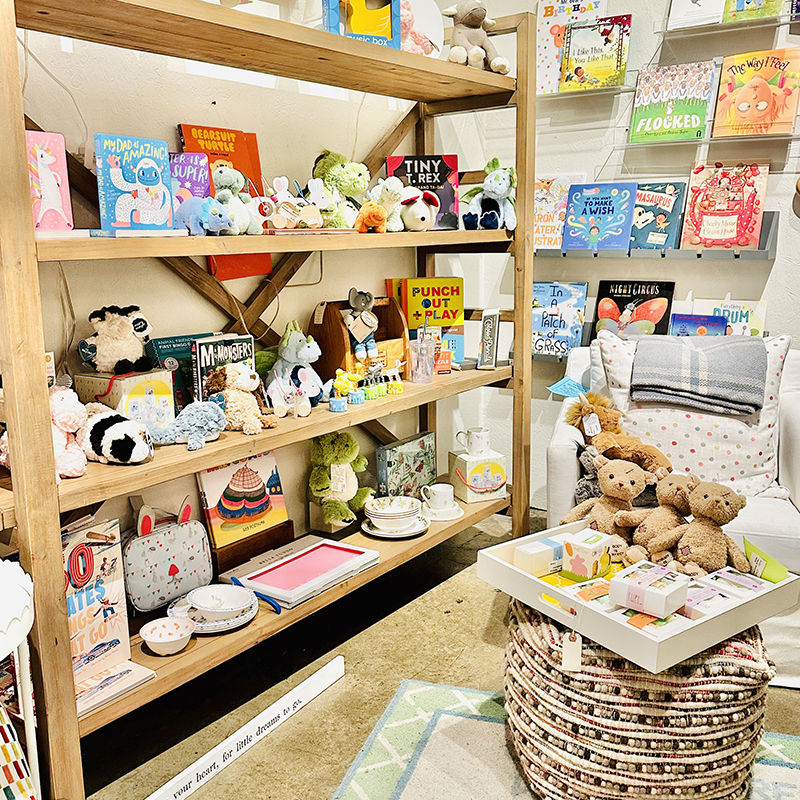 Stop by to shop our jewelry cases, the “On a Whim” boutique and our baby clothing, children’s books and toy section.