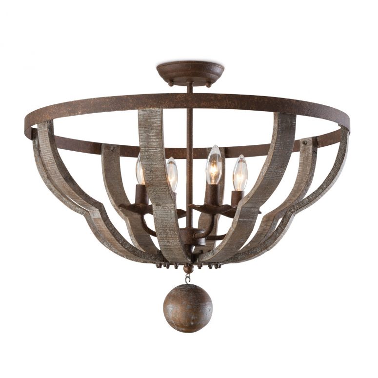 Beach wood and rust-toned steel combine in this stunning semi-flush fixture. The lines of this piece evoke an old world European charm that can be easily incorporated into a traditional, transitional, coastal or farmhouse look. Please check with us for availability…stock changes daily. There’s always something new to discover at Kudzu and Company!